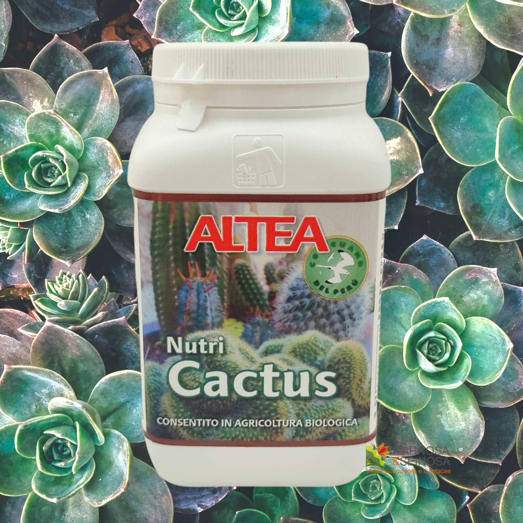 Concime naturale a lenta cessione, ricco di vitamine, acidi umici e fulvici, specifico per la nutrizione sana e bilanciata di piante grasse e succulente.